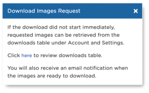 Once images have been received, an email notification will be sent. The status of requested images can be found on the “Request History” table.