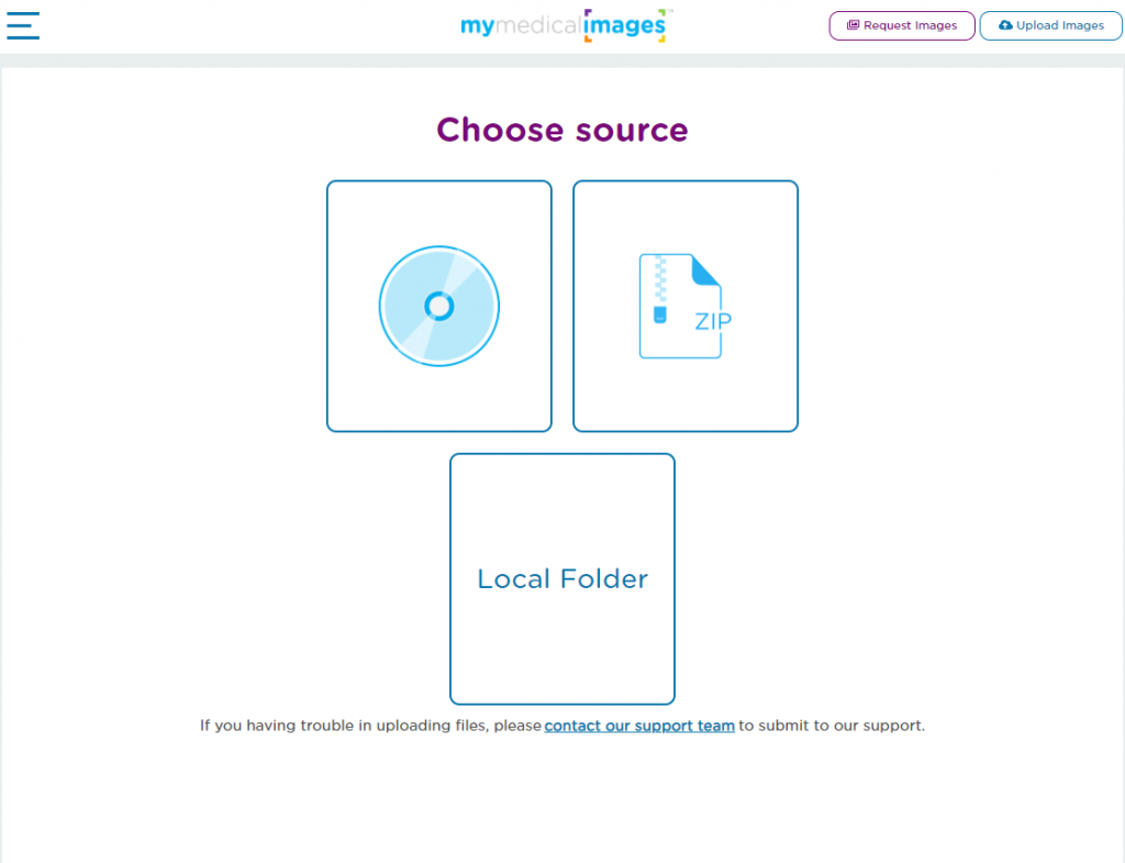 Disclaimer: Uploading DICOM images is only supported on Chrome/Safari on Windows/Mac. Uploading DICOM images via a mobile device is currently not supported.